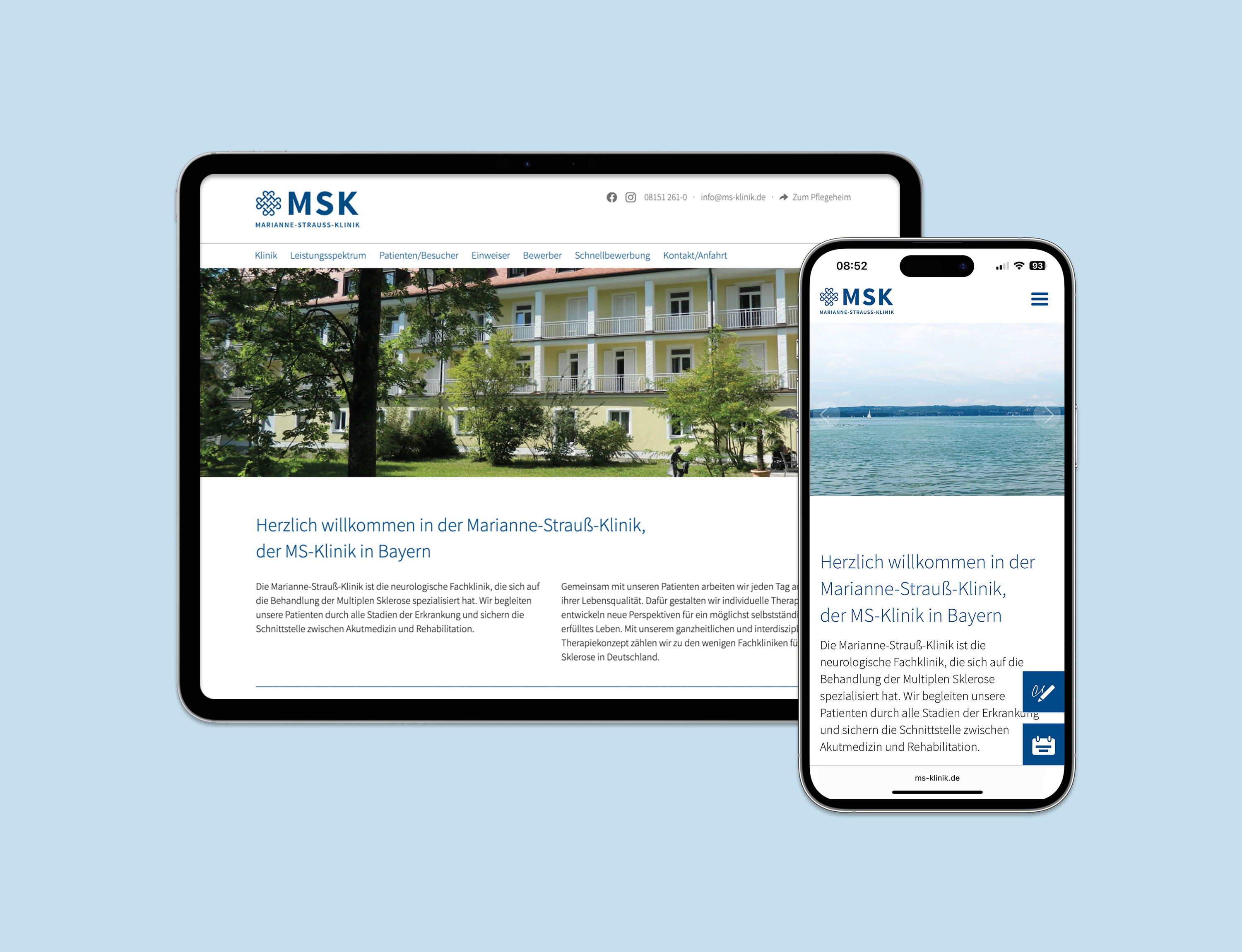 Der erste Schritt: die visuelle Identität. Wir haben das Corporate Design der MSK grundlegend überarbeitet – mit einem Redesign des Logos, einer modernisierten Farbwelt und vor allem einer Bildsprache, die sowohl Professionalität als auch Menschlichkeit vermittelt.