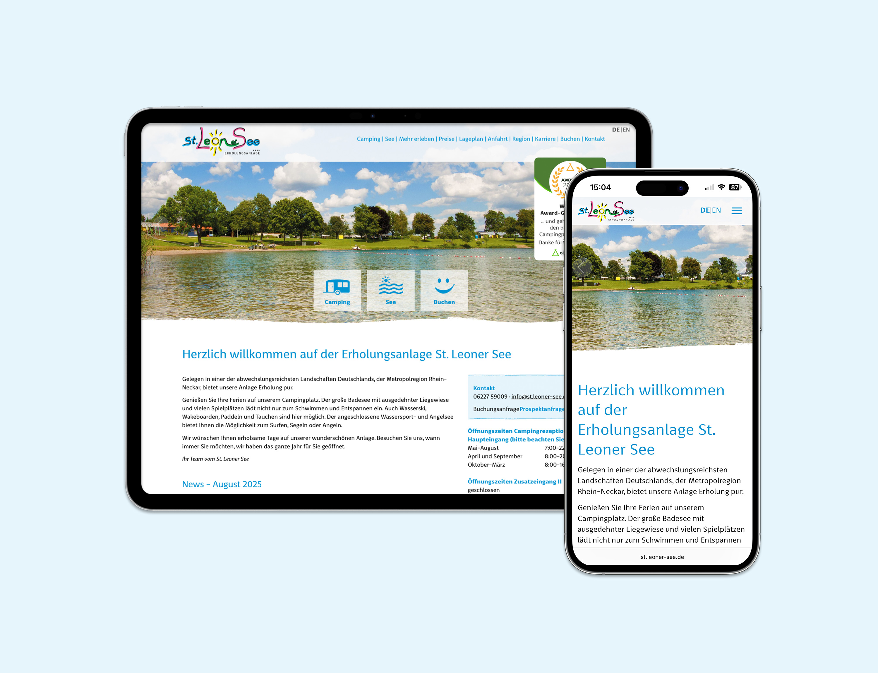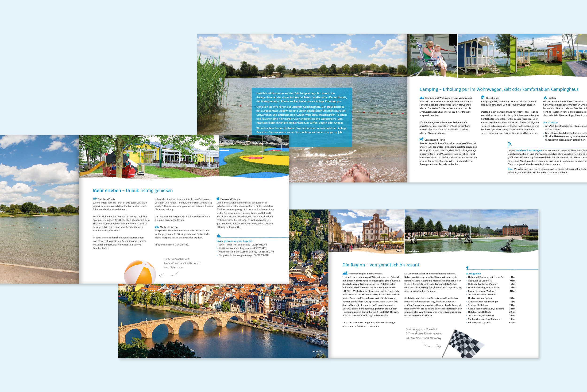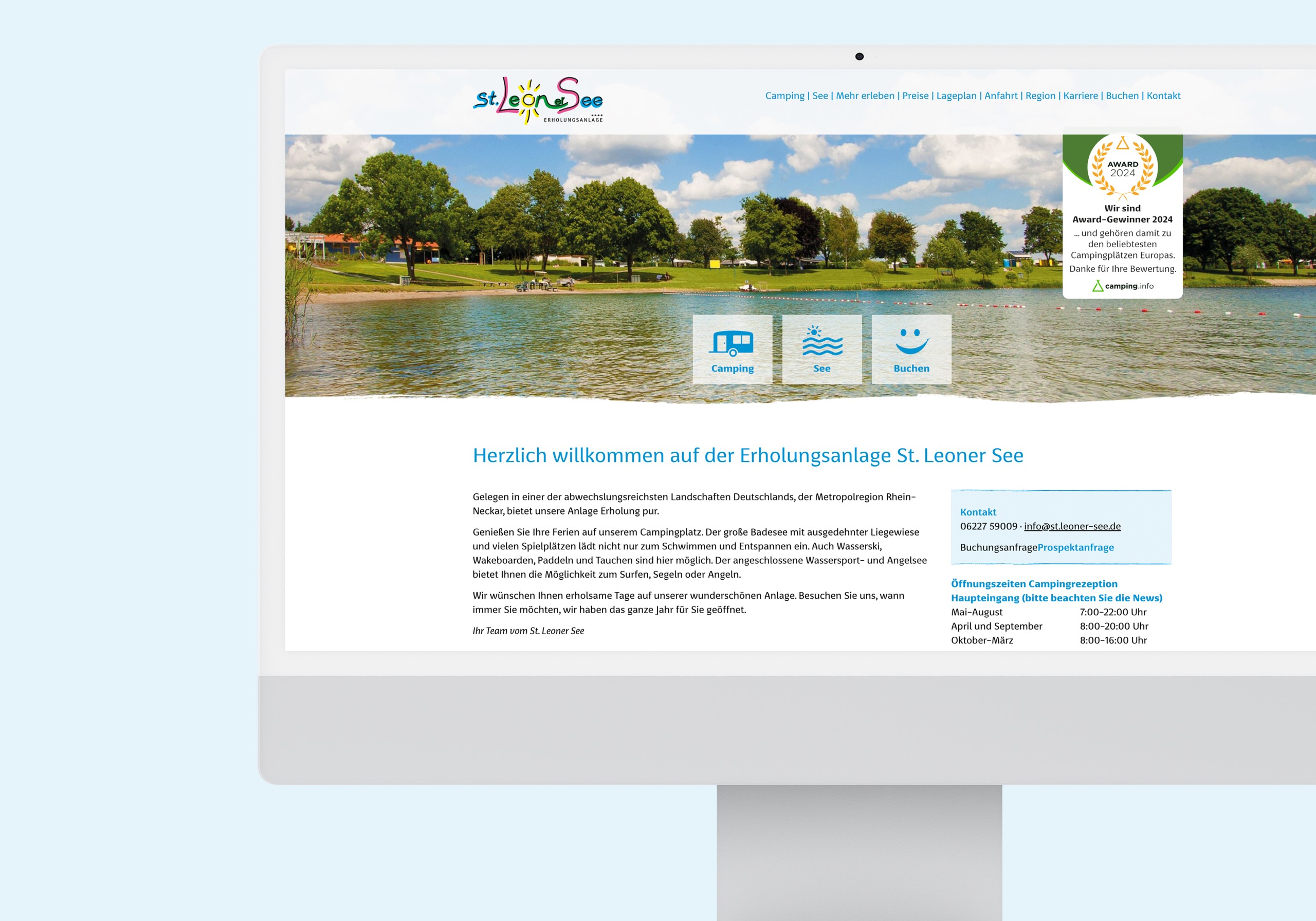 ahorn. begleitet den St. Leoner See bereits seit über 25 Jahren. Für den aktuellen Auftritt haben wir die Website, die passende Imagebroschüre, Anzeigen und diverse Informationsmaterialien erstellt – übersichtlich, aktuell und auf die Bedürfnisse der Gäste abgestimmt. Neu erstellte Fotos und klare Texte helfen dabei. In enger Zusammenarbeit mit der öffentlichen Betreiberin der Anlage entstand ein stimmiges Gesamtbild, das online wie offline überzeugt.
